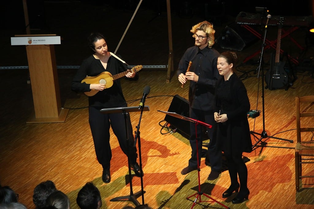 – morceaux de musique du XVII siècle joués et chantés par un trio d’élèves du Conservatoire de Musique d’Aix-en-Provence