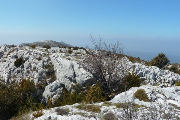 La Croix se rapproche petit à petit, mais la traversée du plan de la Crau , avec ses lapiaz fissurés, est fatigante.