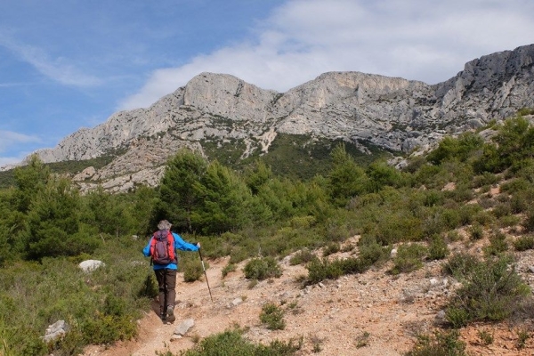 Le début du parcours est aisé, les bénévoles de l’Association pour Sainte-Victoire (ASV) ont restauré cette partie en élaguant les pins de bordure, en creusant des revers d’eau et en réalisant ou renforçant des ” marches “, ceci afin d’en limiter l’érosion.