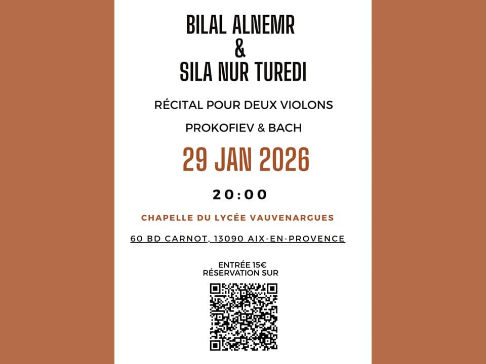 L’association Les Cordes de Shams propose un récital le 29 janvier 2026 à 20 heures, dans l’ancienne chapelle du Lycée Vauvenargues à Aix en Provence.